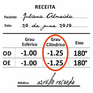 Nos graus cilíndricos: - 1,00, - 1,50, - 2,00, - 2,50, - 2,75 e disponíveis somente para "Grau informado da: Receita".