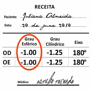 Nos graus esféricos de 0,00 a - 3,00 disponível para grau cilíndrico até - 2,50 "Grau informado da: Receita".